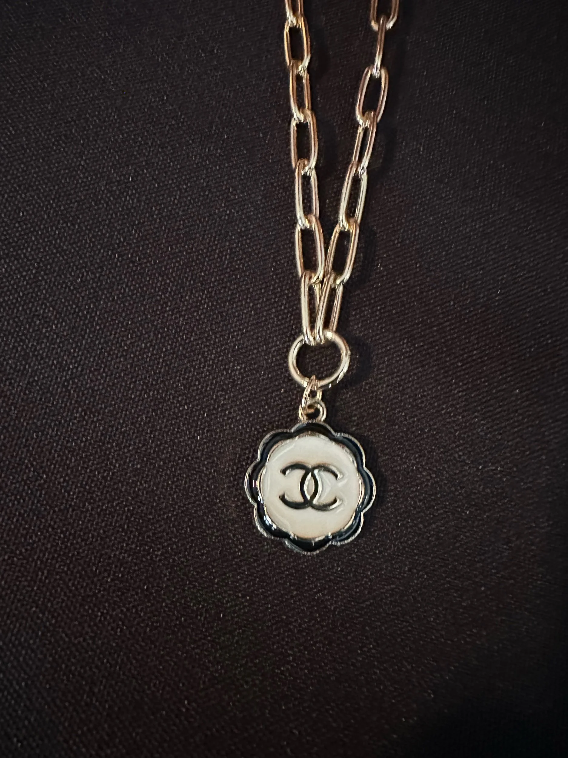 Shop › Black and White Chanel Button Image 1 of 1 Black and White Chanel Button $90.00 Black & White Chanel Button on 16 inch chain with 2 inch extension Purchase Added! Black & White Chanel Button on 16 inch chain with 2 inch extension Reviews Reviewer Name Review Date Star Rating Description Posted on Etsy Product Show More