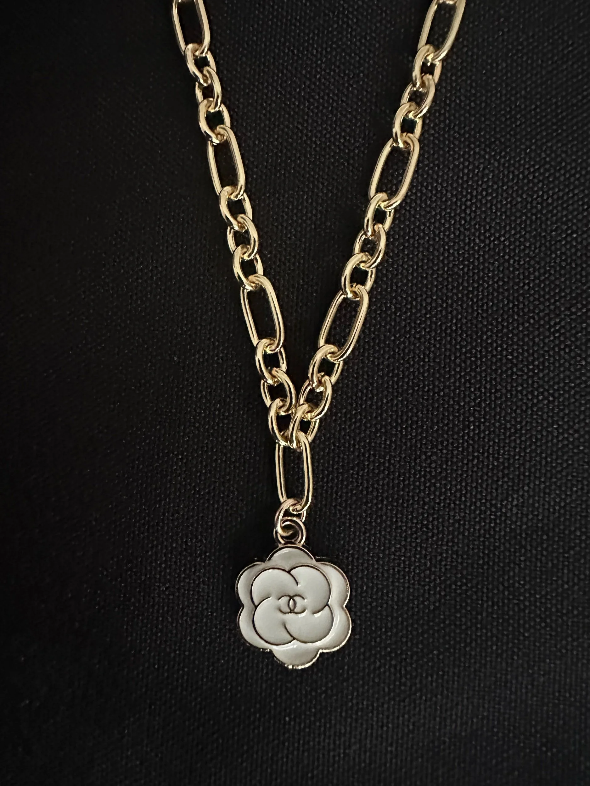 Shop › White Camellia Chanel Flower Necklace Image 1 of 1 White Camellia Chanel Flower Necklace $90.00 White Camellia Flower Chanel Necklace on 18 inch chain- adjustable Purchase Added! White Camellia Flower Chanel Necklace on 18 inch chain- adjustable Reviews Reviewer Name Review Date Star Rating Description Posted on Etsy Product Show More
