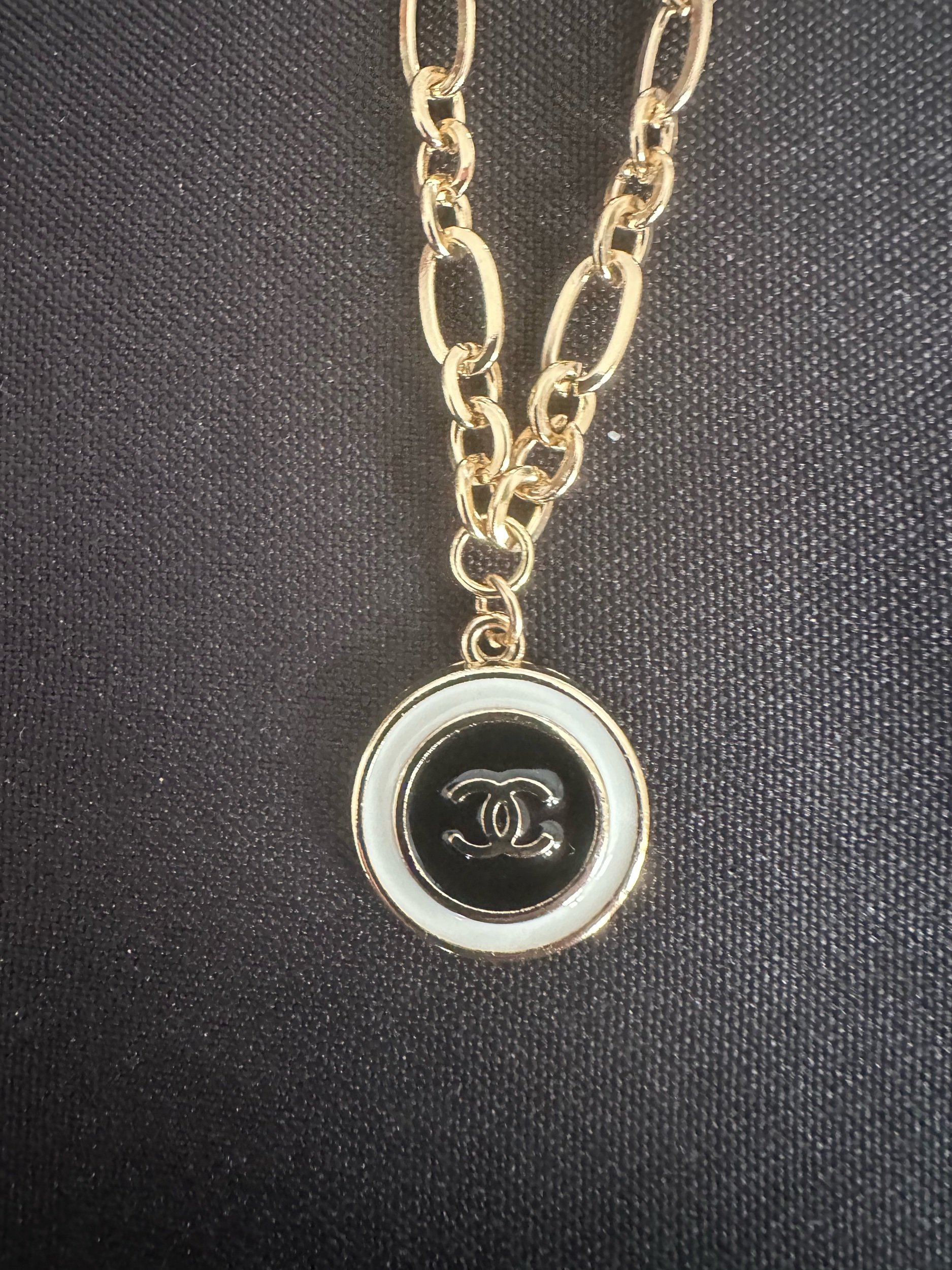 Shop › Black and White Chanel Button Necklace Image 1 of 1 Black and White Chanel Button Necklace $90.00 Black & White Chanel Button Necklace on 16 inch chain with a 3 inch extension Purchase Added! Black & White Chanel Button Necklace on 16 inch chain with a 3 inch extension Reviews Reviewer Name Review Date Star Rating Description Posted on Etsy Product Show More