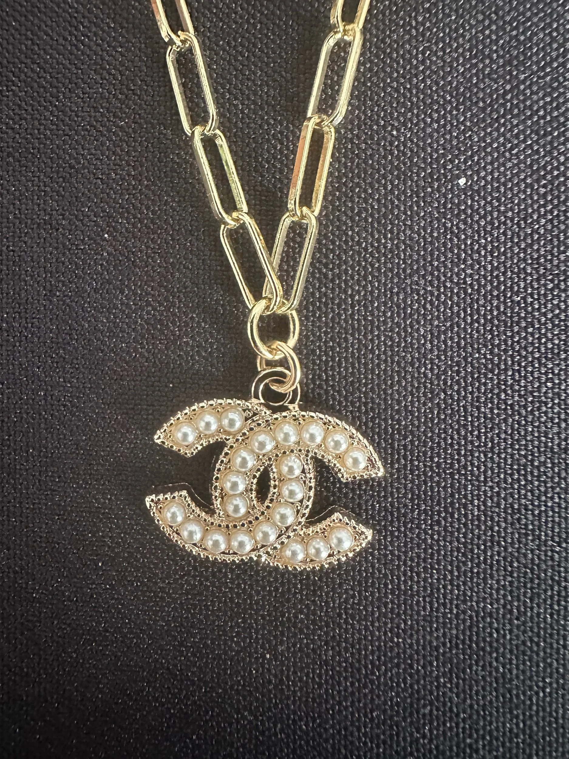 Shop › Pearl Chanel Button Necklace Image 1 of 1 Pearl Chanel Button Necklace $90.00 Pearl Chanel Button Necklace on 18 inch chain with 2 inch extension Purchase Added! Pearl Chanel Button Necklace on 18 inch chain with 2 inch extension Reviews Reviewer Name Review Date Star Rating Description Posted on Etsy Product Show More